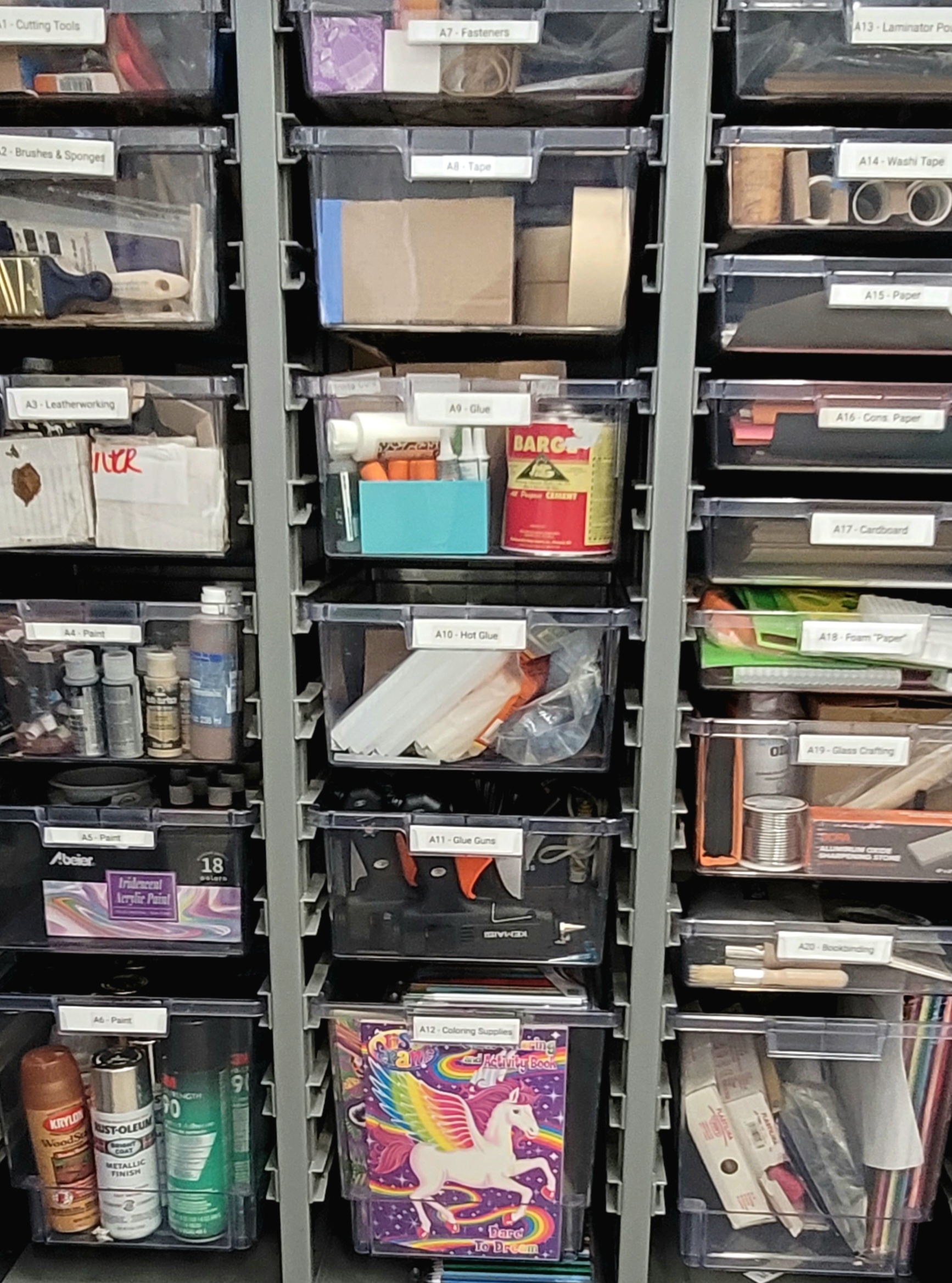 A variety of art supplies, including (but not limited to) paint, various papers, washi tape, bookbinding tools, leatherworking tools, and more are available to patrons. Make An Appointment